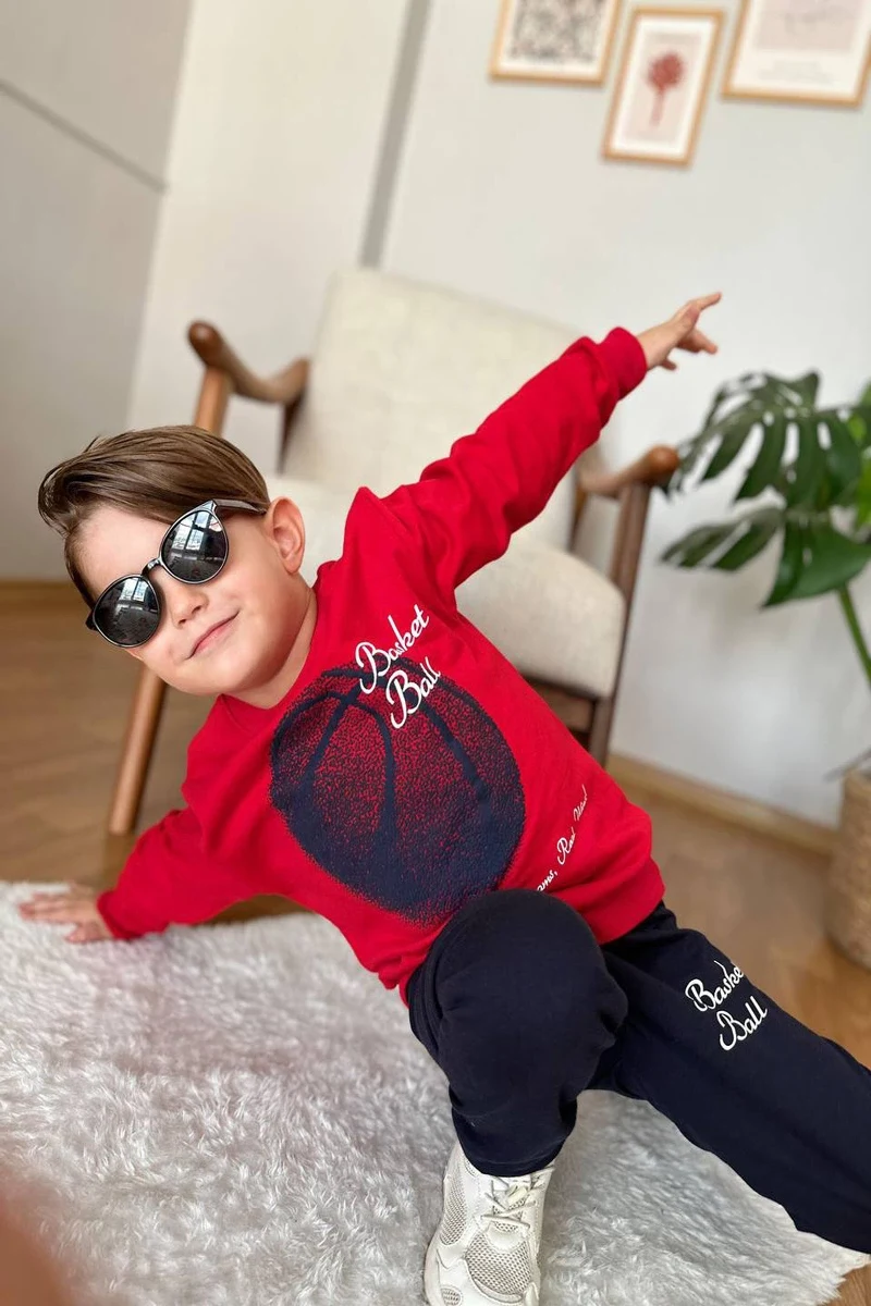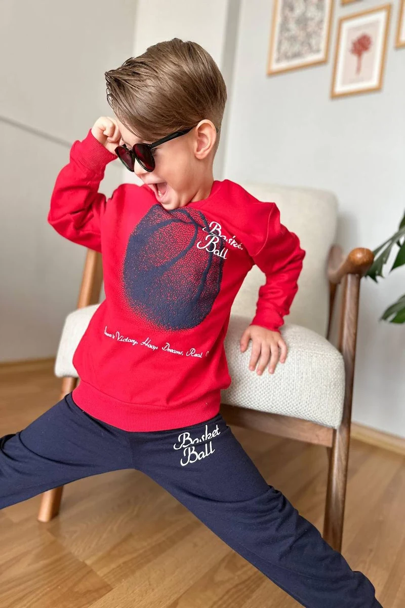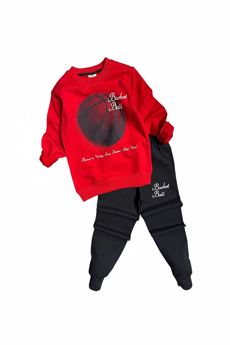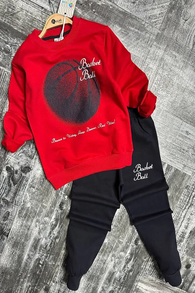 Spor Ruhunu Yansıtan Basketball Yazı Ve Desenli Bu Erkek Çocuk Eşofman Takım Hem Şık Hem Rahat Tasarımıyla Dikkat Çekiyor.