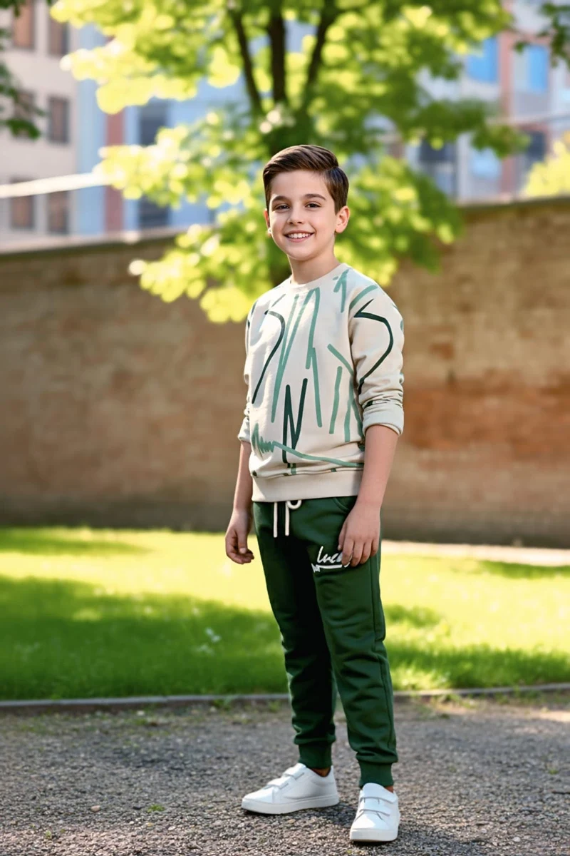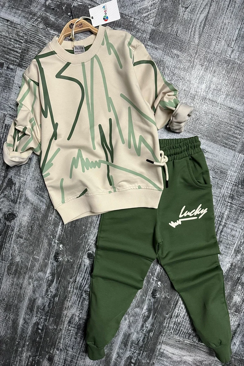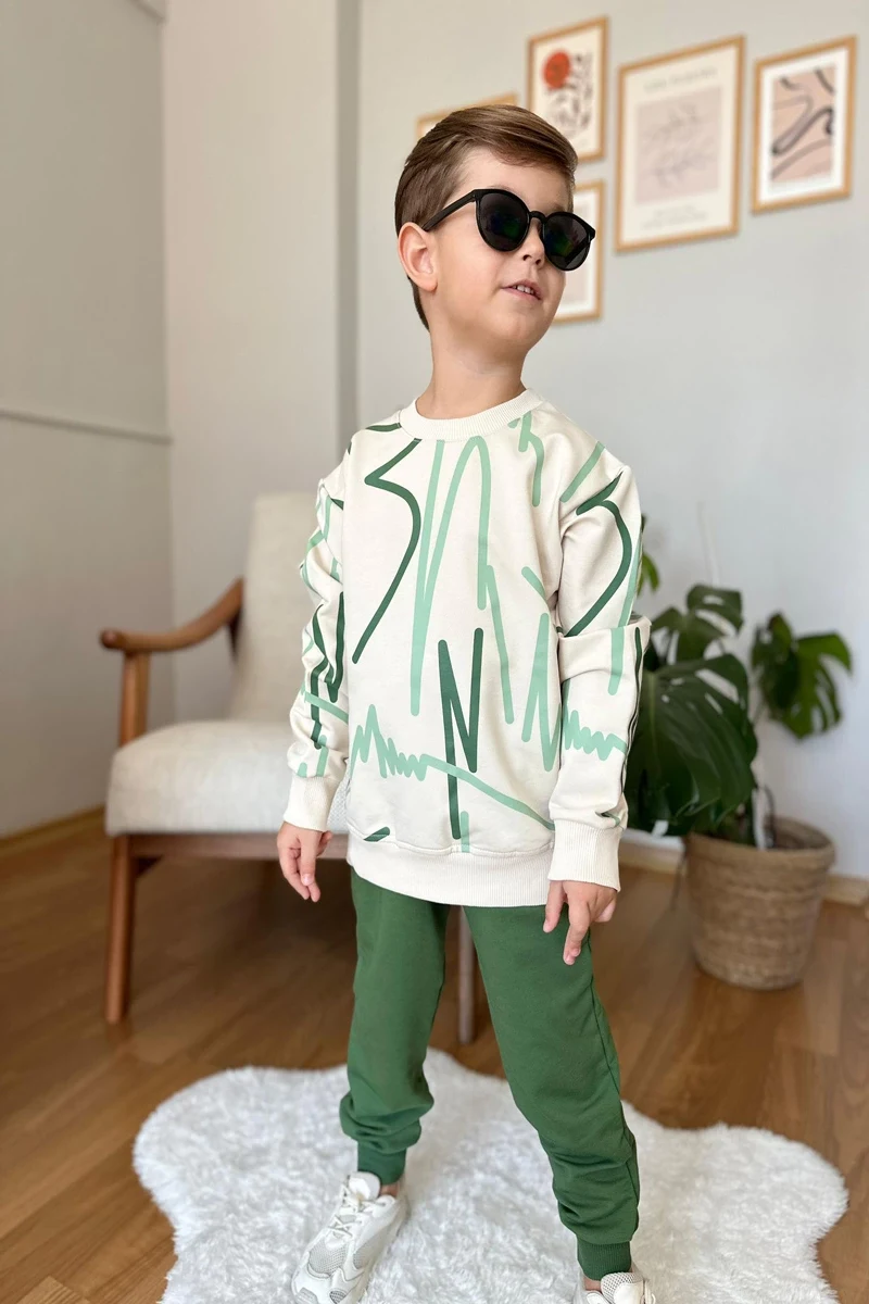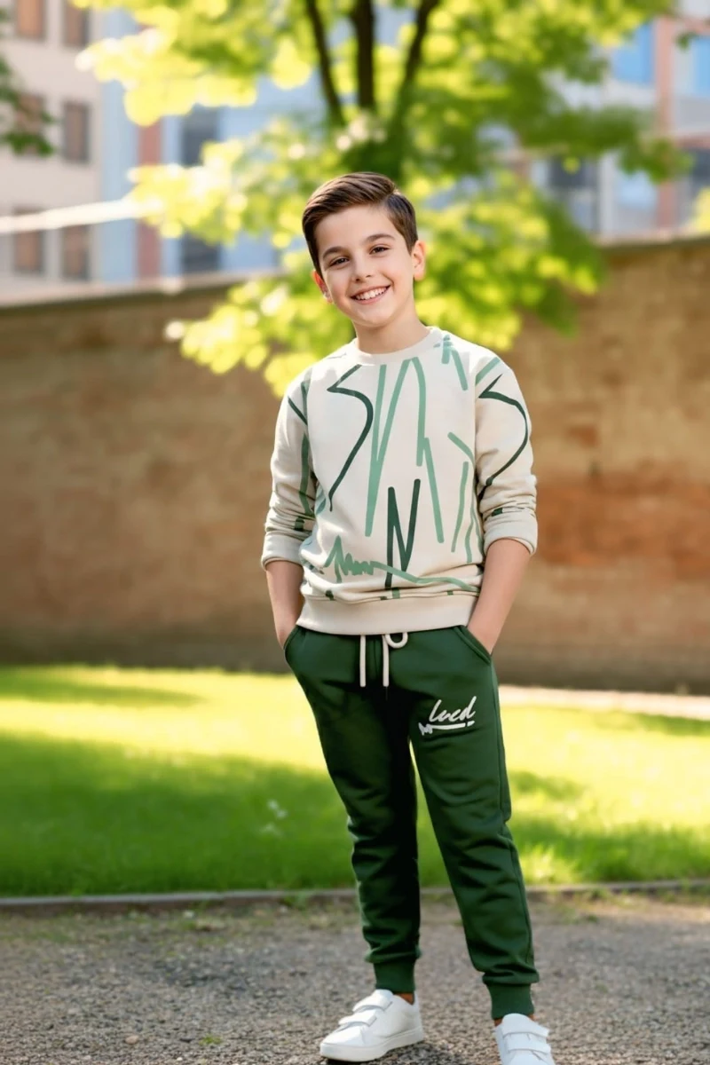 Enerjik Çizgi Deseni ve Canlı Yeşil Rengiyle Öne Çıkan Erkek Çocuk Eşofman Takımı.
