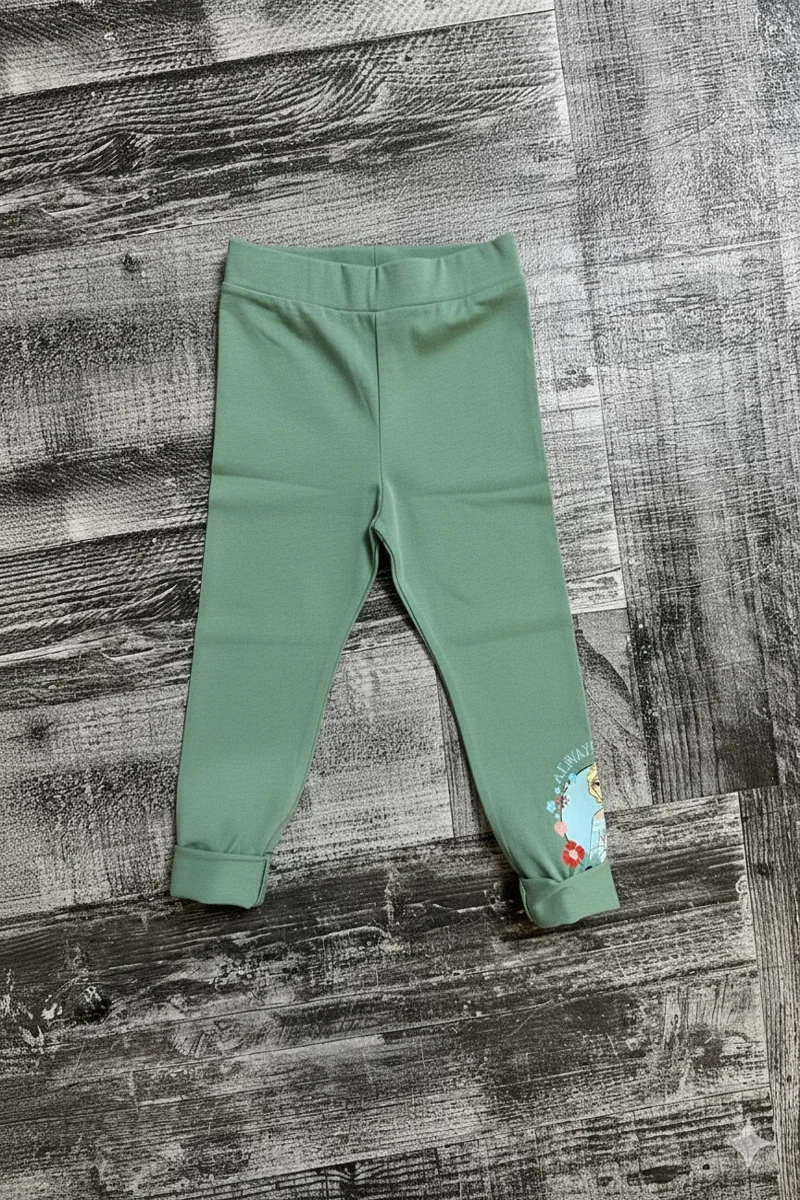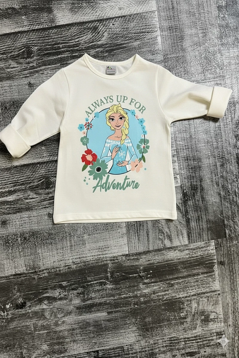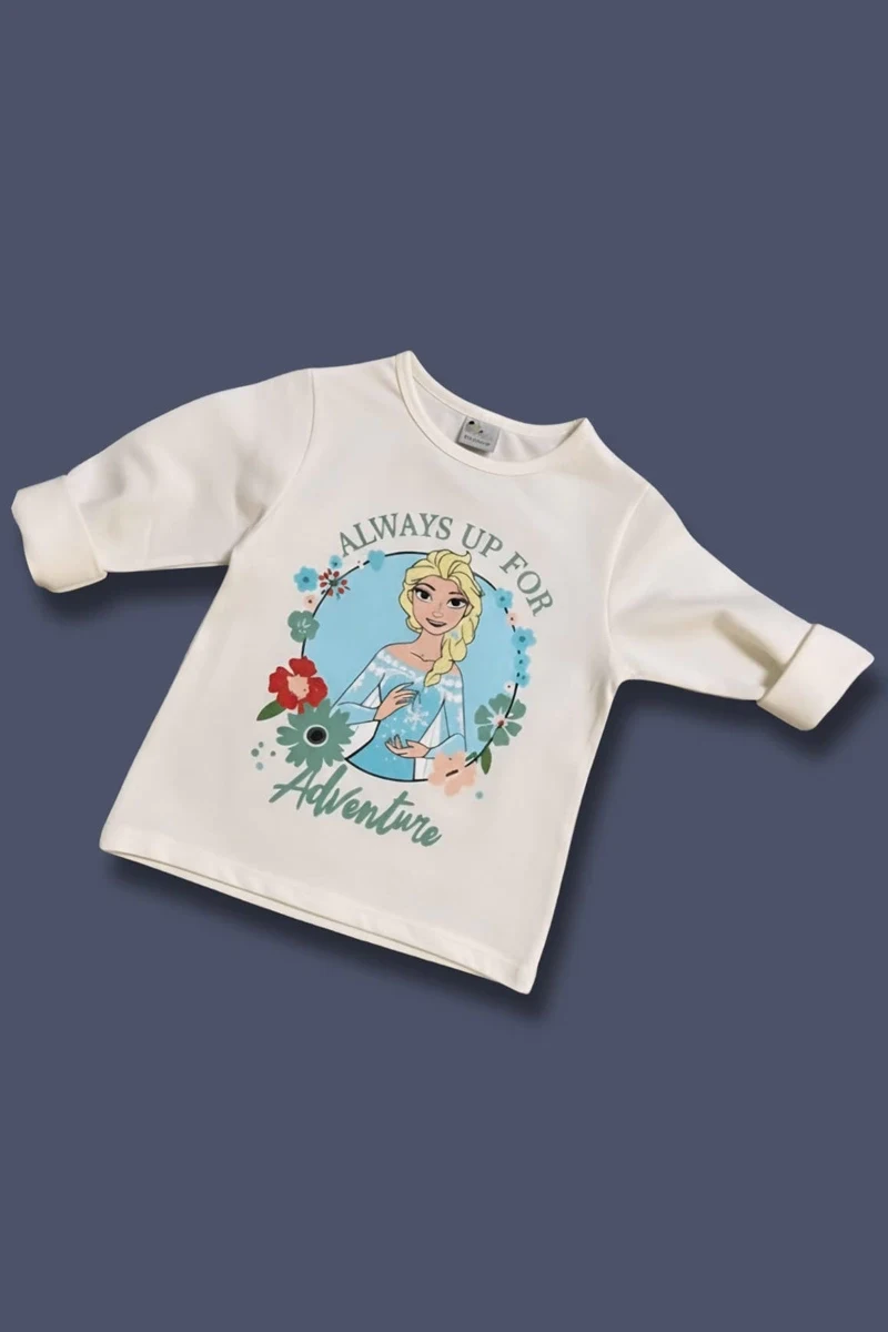 Kız Çocuklarının Hayal Kahramanı Elsa Desenli Krem Renk Üst ve Yeşil Renk Likralı Tayttan Oluşmaktadır.