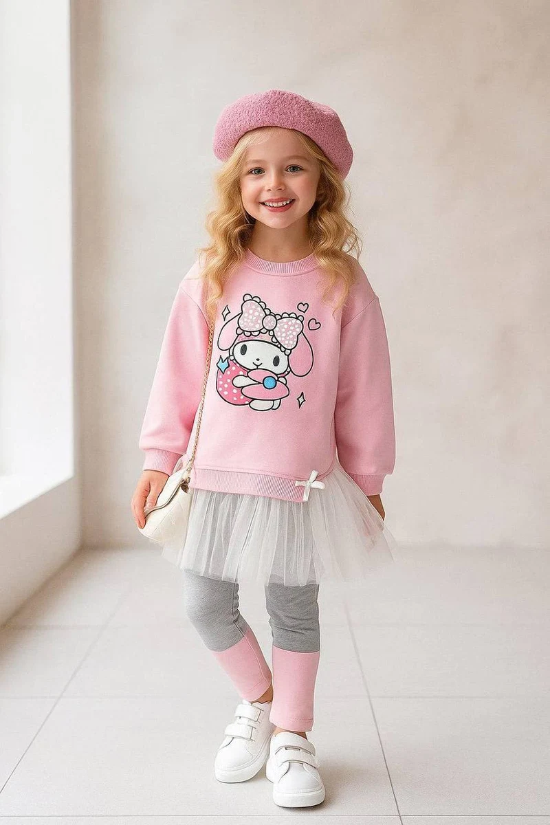 - Üst Sevimli Kuromi Desenli ve Tütü Etekli İki İplik Sweatshirt