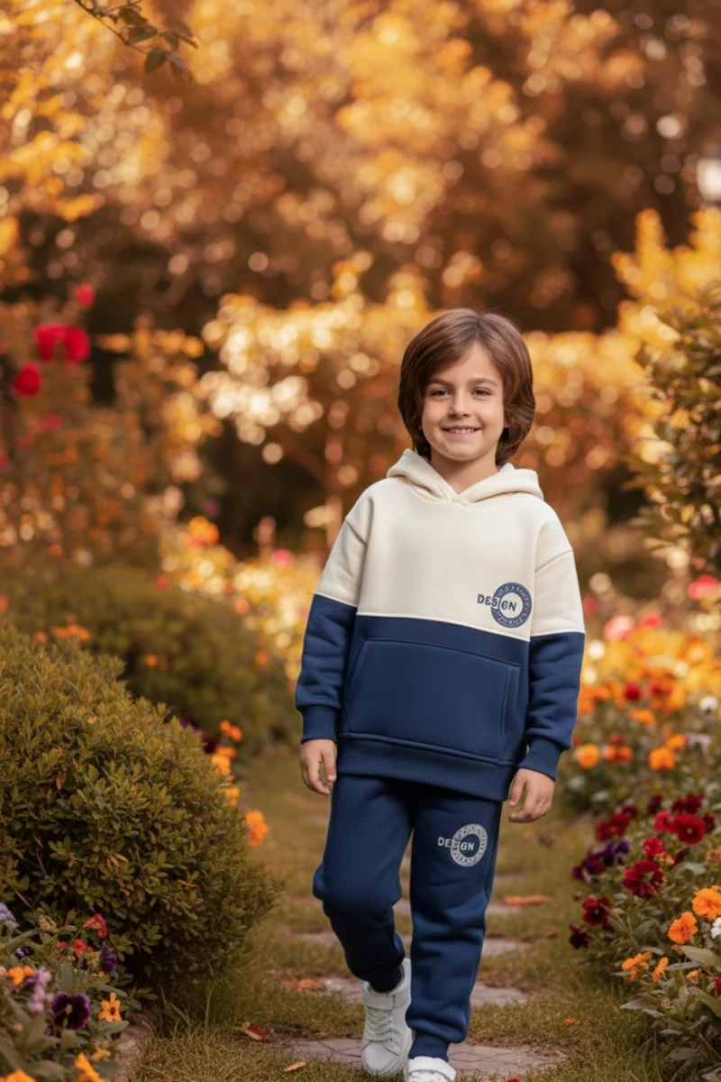 Günlük kullanımda konforu ve şıklığı bir arada sunan 3 iplik kapşonlu erkek çocuk eşofman takımı, çocukların gün boyu rahatça hareket edebilmesi için özel olarak tasarlanmıştır. Yumuşak dokulu 3 iplik kumaşı sayesinde serin ve soğuk havalarda sıcak tutar, ciltte rahatsızlık hissi oluşturmaz.